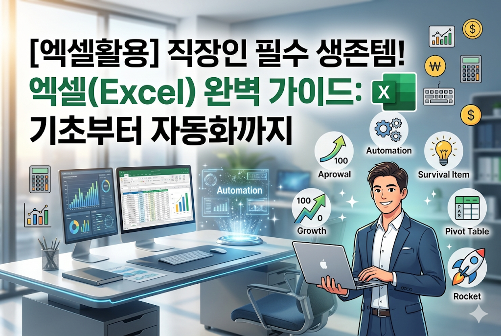 엑셀은 단순한 표 계산 소프트웨어를 넘어, 데이터 관리와 업무 자동화를 위한 최고의 생산성 도구입니다. 본 가이드에서는 초보자가 반드시 알아야 할 기본 함수부터 실무 효율을 200% 높여주는 데이터 시각화 및 피벗 테이블 활용법까지 핵심 노하우를 정리했습니다. 엑셀 하나로 복잡한 업무를 단순화하고 소중한 퇴근 시간을 사수해 보세요!